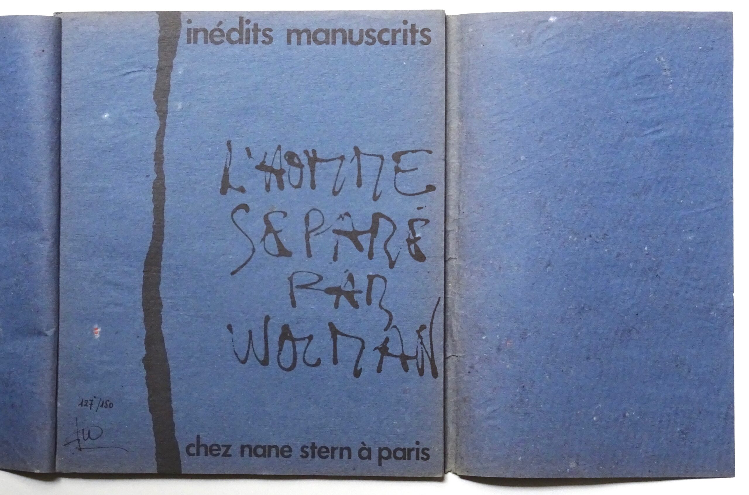 Tirage total à 150 exemplaires signés et numérotés par l’auteur de I à XX sur papier gris et de 21 à 150 sur papier bleu.